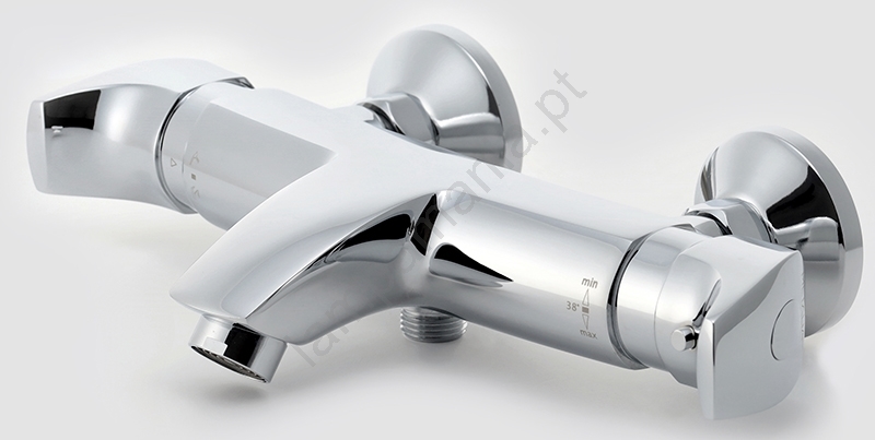 • Termostato no lado direito, controlo do fluxo de água no lado esquerdo.