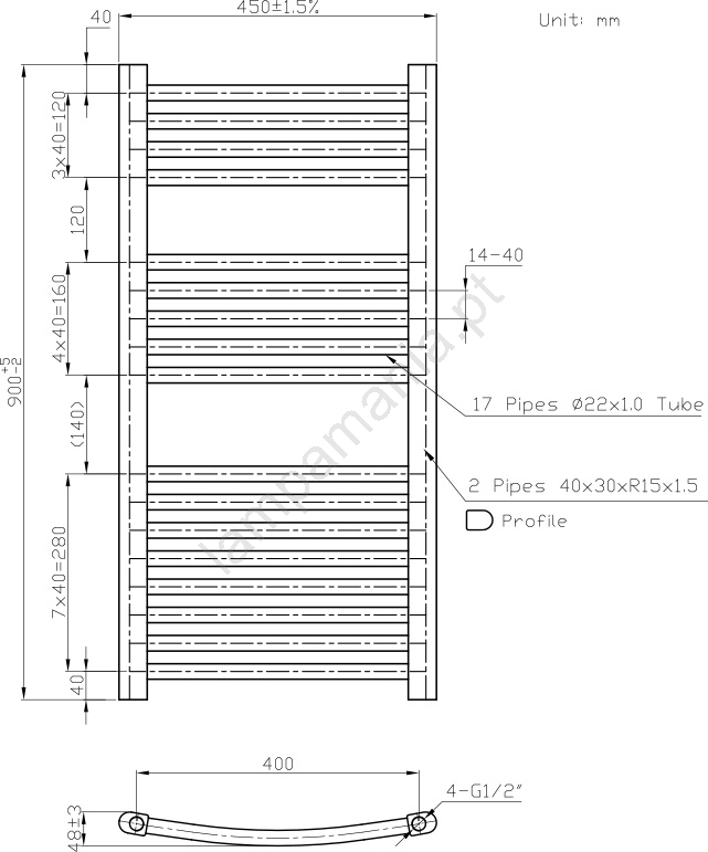 Novaservis - Radiador em escada para casa de banho 365W/230V 90x45 cm branco arredondado