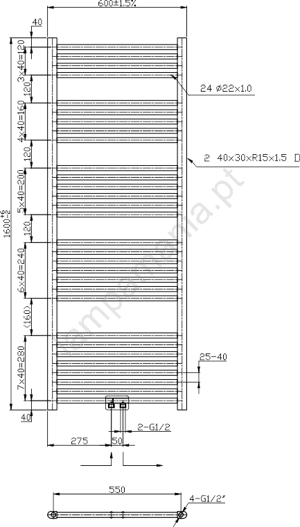 Novaservis - Radiador toalheiro em escada para casa de banho 836W/230V 160x60 cm preto reto