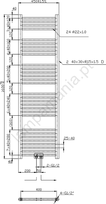 Novaservis - Radiador toalheiro para casa de banho tipo escada 648W/230V 160x45 cm preto reto