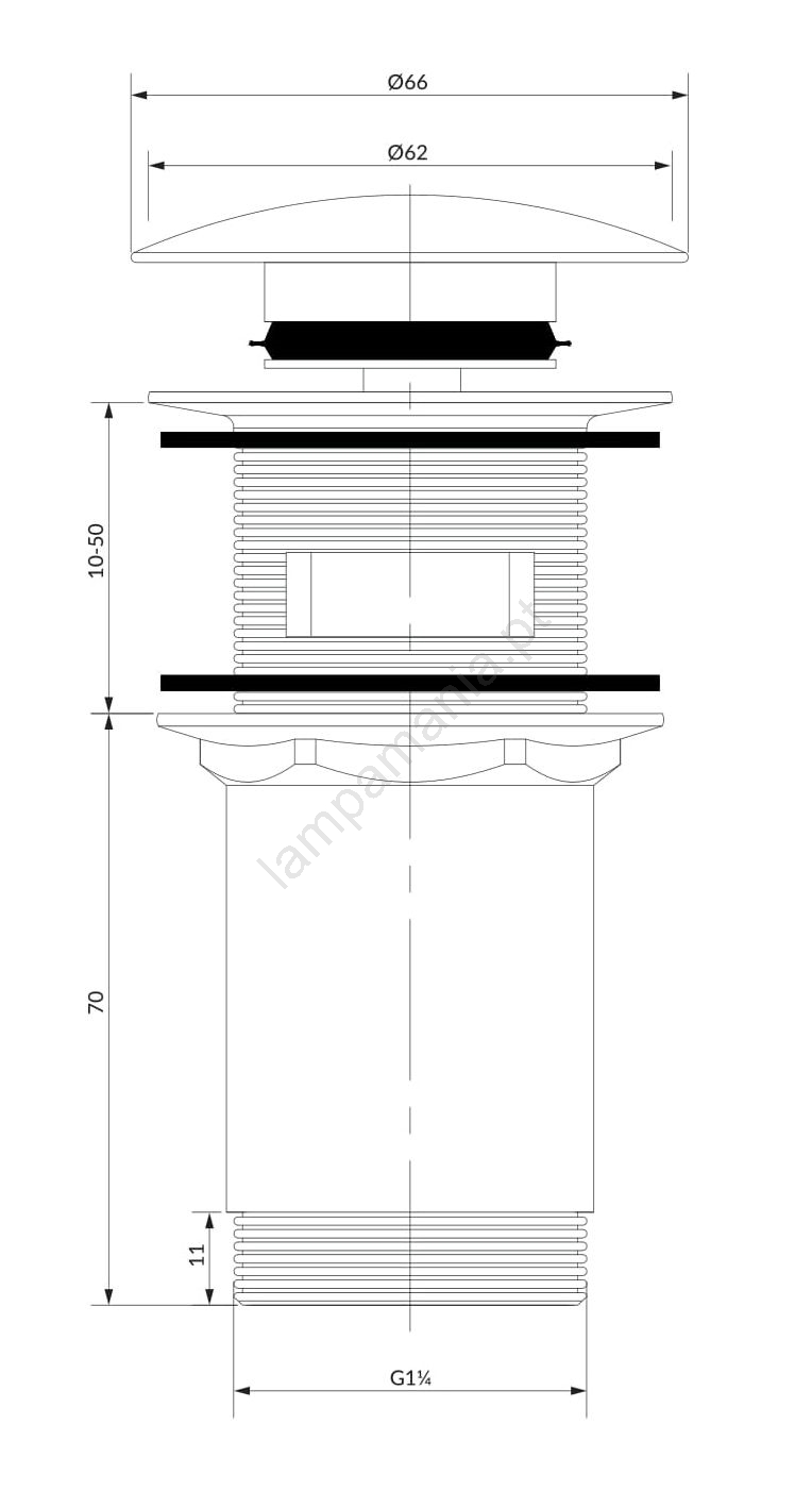 OMNIRES A706CPB - Válvula de lavatório CLICK-CLACK diâmetro 6,6 cm cobre escovado