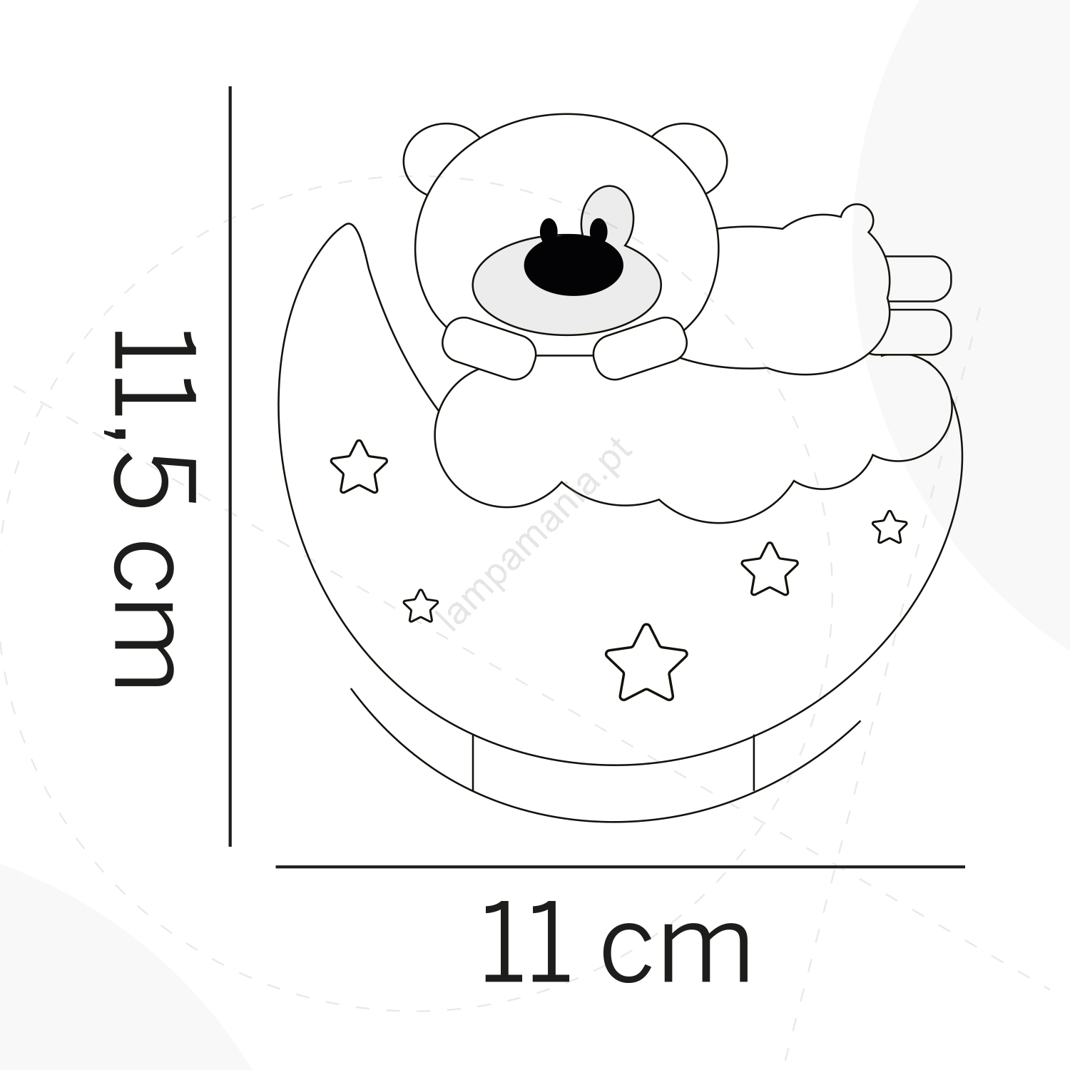 • A base é formada por uma meia-lua em azul suave com estrelas realçadas, que balança suavemente ao toque.