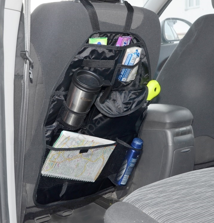 • Organizador concebido para ser fixado no encosto do banco da frente.