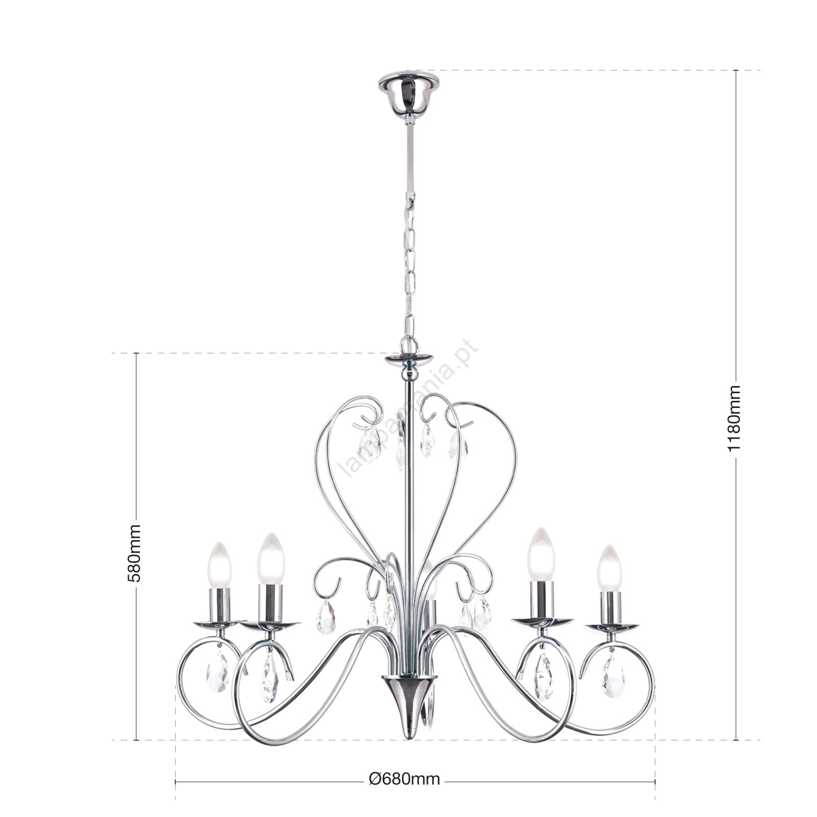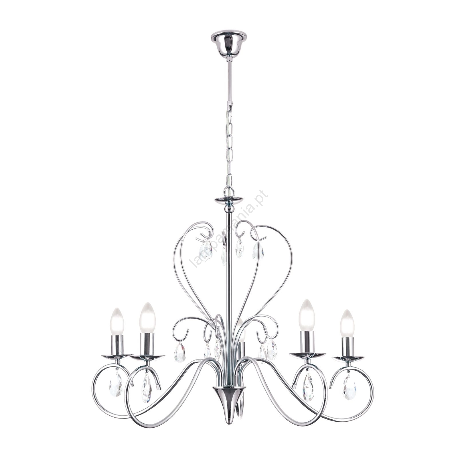 Candeeiro suspenso de cristal ALESSIA 5xE14/40W/230V cromado brilhante caracteriza-se por um design agradável e funcional.  Uma lâmpada com casquilho E14 é adequada para a iluminação Aqui, pode comprar outras lâmpadas a preços vantajosos. Terá um complemento interessante para a sua casa.