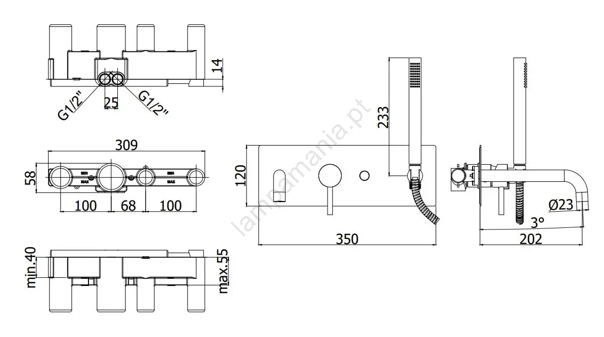 • Indicado para duche e banheira, consoante a ligação selecionada.