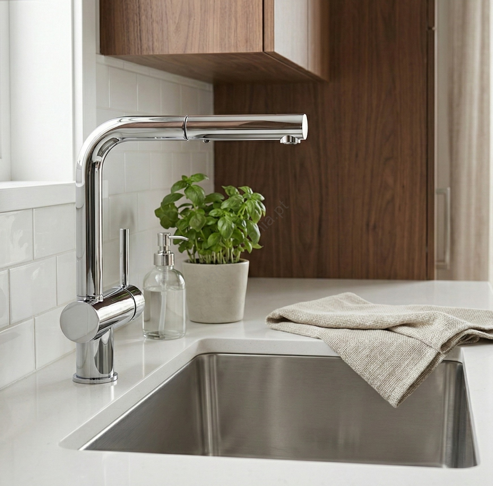 Paffoni - Misturador de cozinha LIGHT com bica extraível 29,2 cm, cromo brilhante