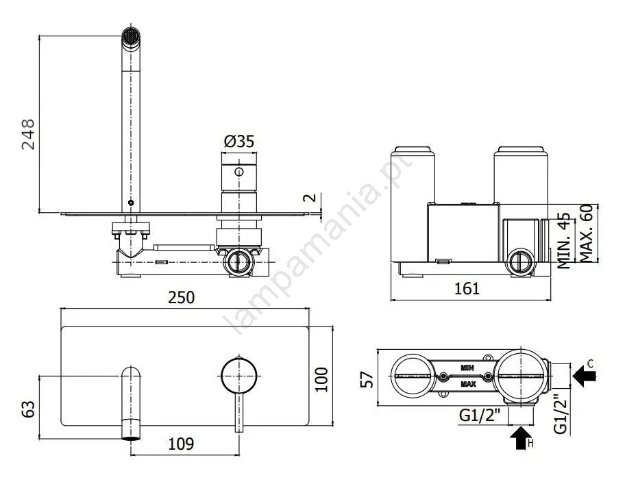 • A montagem destina-se a soluções encastradas e a torneira inclui também o corpo de instalação encastrado.