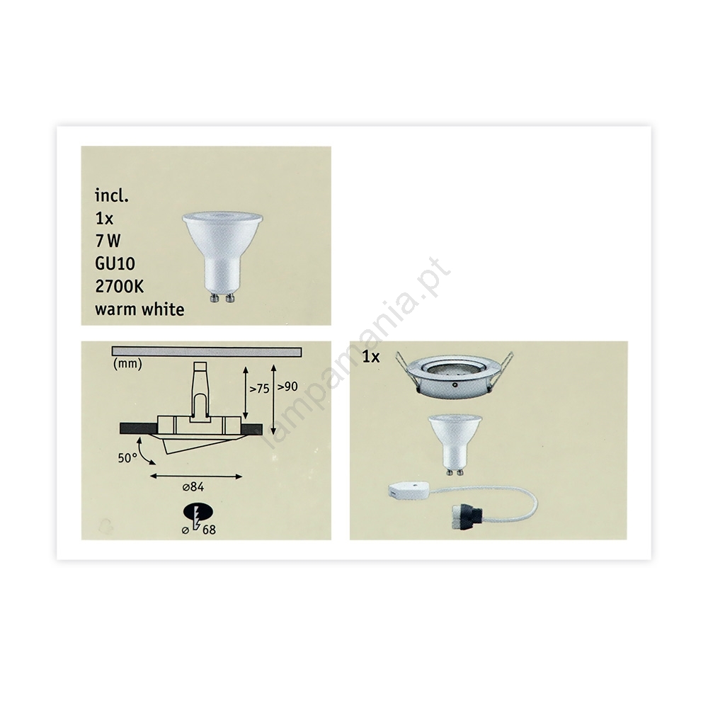 Paulmann 93603 - LED-GU10/7W IP23 Iluminação embutida de casa de banho com regulação NOVA 230V