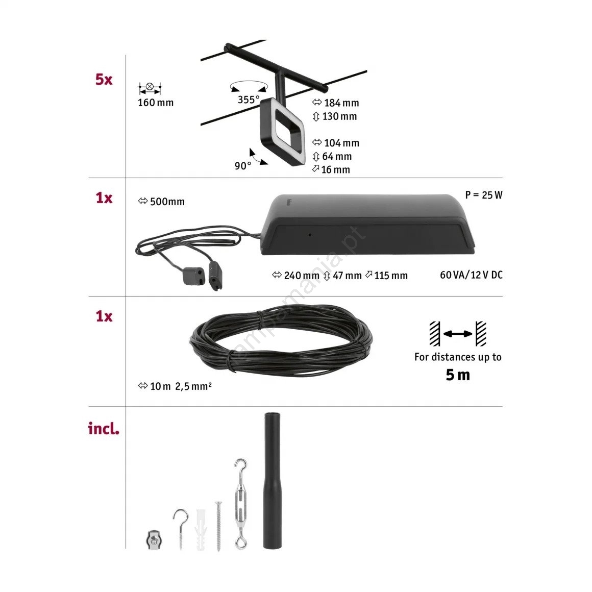 • Paulmann 94485 - CONJUNTO 5xLED/4,8W Foco para sistema de cable FRAME 230V negro