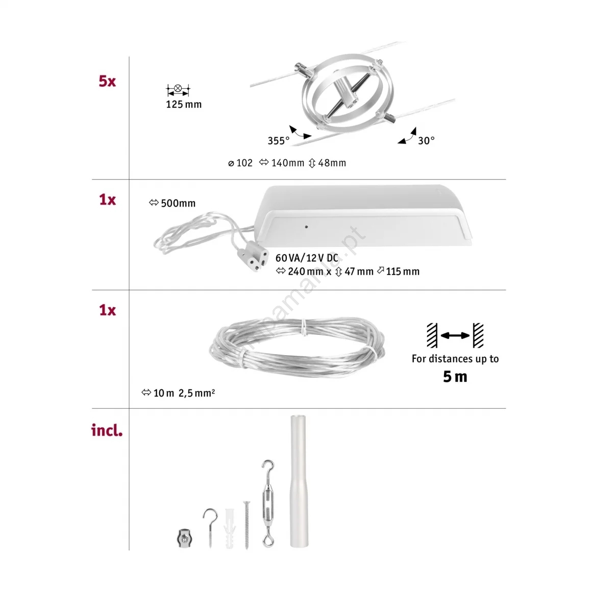 • Paulmann 94490 - CONJUNTO 8xGU5,3/7,5W Foco para sistema de cable CARDAN 230V cromo mate