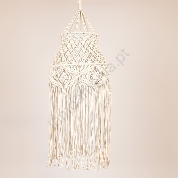 • Luminária suspensa confeccionada com técnica de nós.