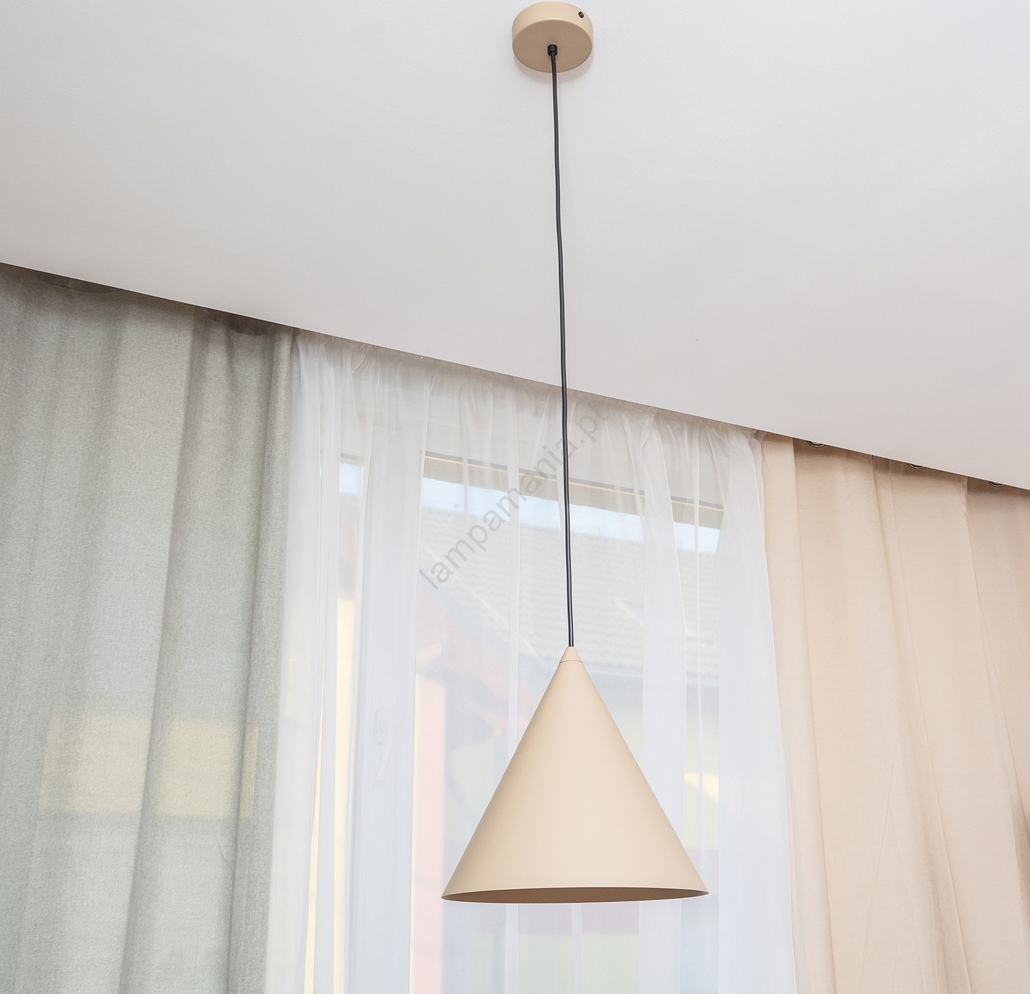 Pendente em cabo ETNA II 1xE27/15W/230V, diâmetro 25 cm, bege