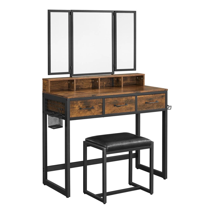 • Traga para a sua casa o charme da madeira e a robustez do metal com esta elegante penteadeira de design sofisticado.