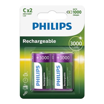 Philips R14B2A300/10 - 2 pçs Pilha recarregável C MULTILIFE NiMH/1,2V/3000 mAh
