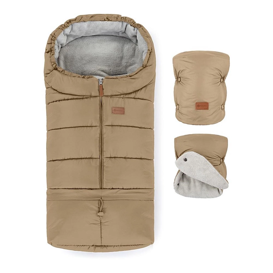 PETITE&MARS - CONJUNTO Saco de bebê 3 em 1 JIBOT + protetores de mão para carrinho castanho