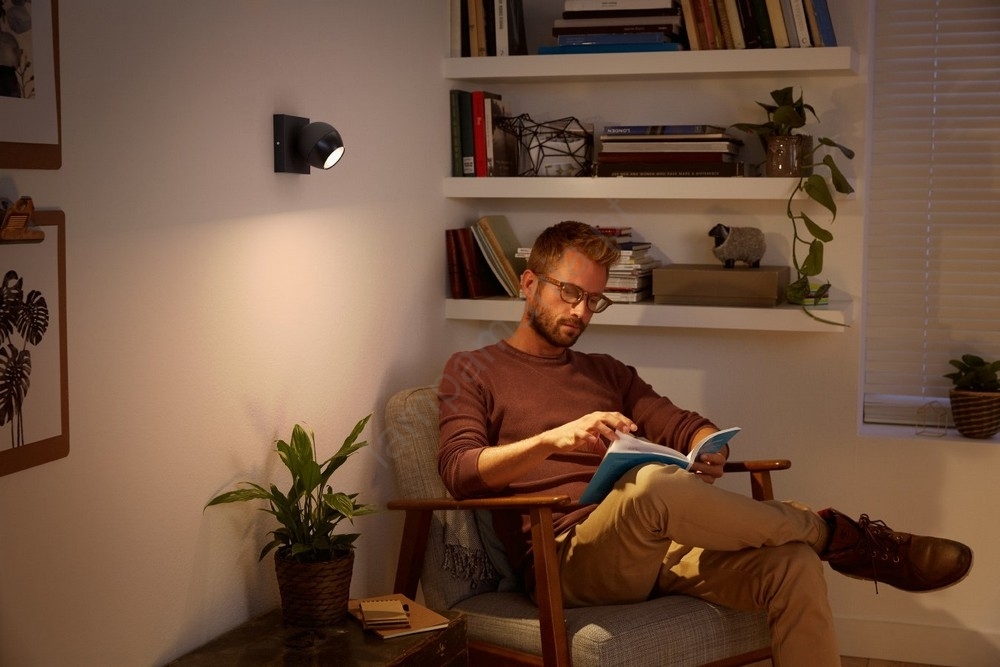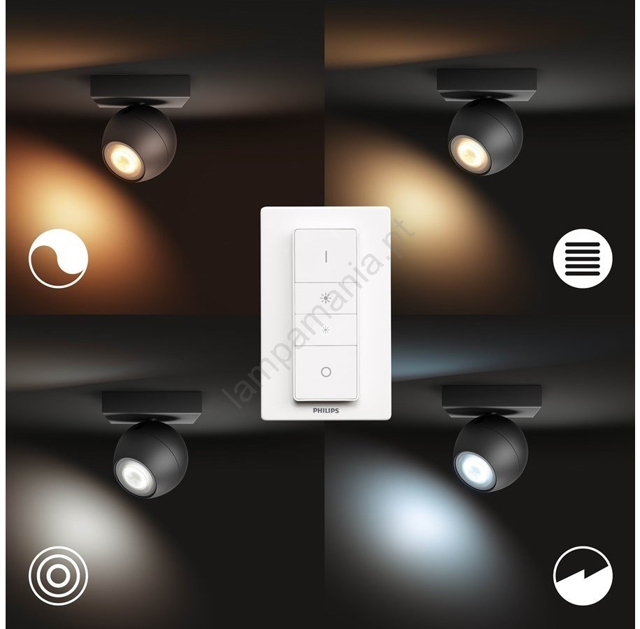 • Desfrute de uma luz suave com a luminária spot preta Philips Hue.