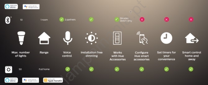 • Pode ligar até 50 luzes e 10 controladores da série Hue.