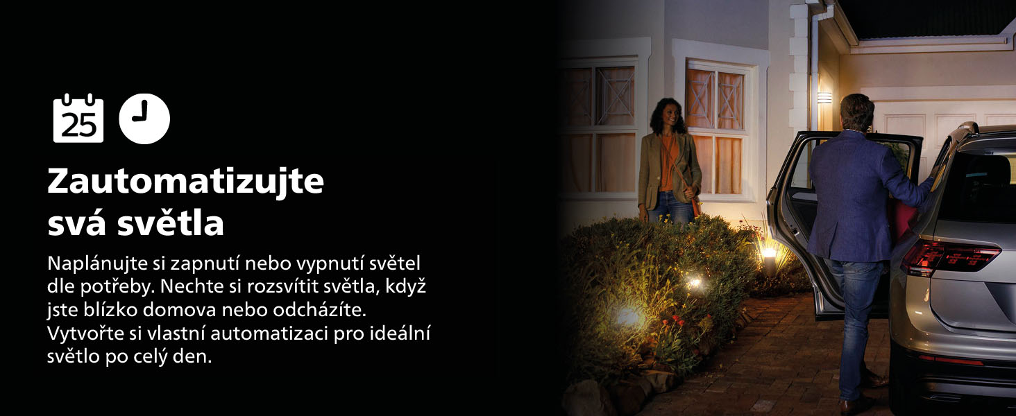 • Iluminação exterior moderna exatamente de acordo com as suas preferências (por exemplo, as luzes podem acender automaticamente à sua chegada a casa e apagar-se quando sai).