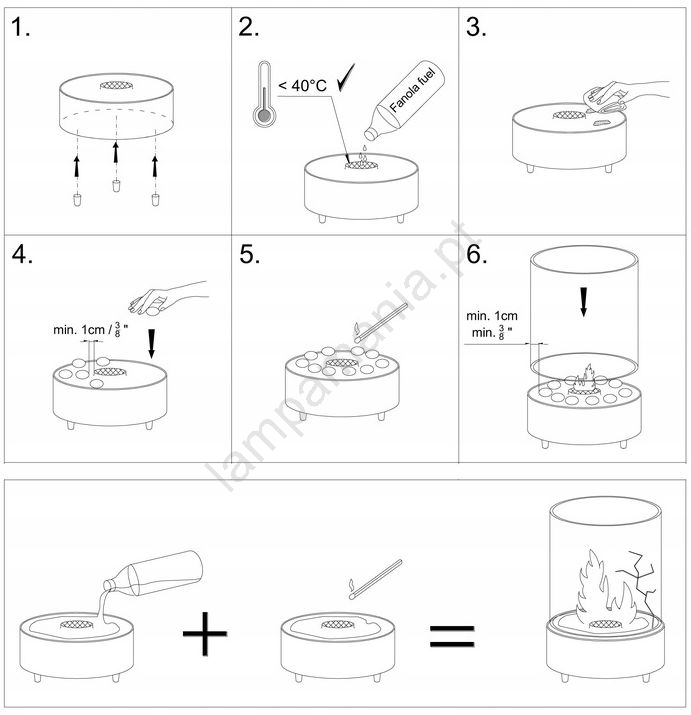 • Fácil de usar - basta despejar o biocombustível no queimador e acendê-lo.