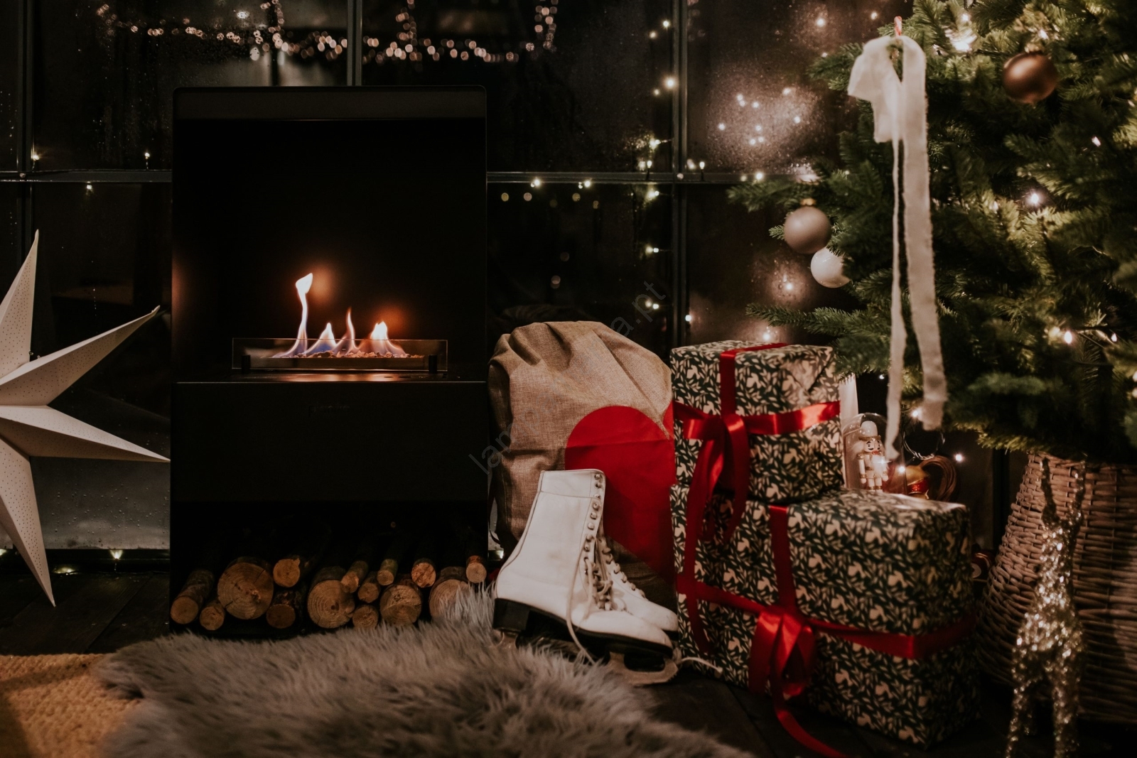 • Na parte inferior da lareira, há um espaço para armazenar lenha.