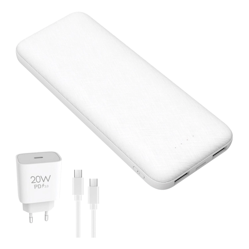 Power Bank 10000 mAh + adaptador 20W Power Delivery + USB-C/USB-C cabo 1m branco
