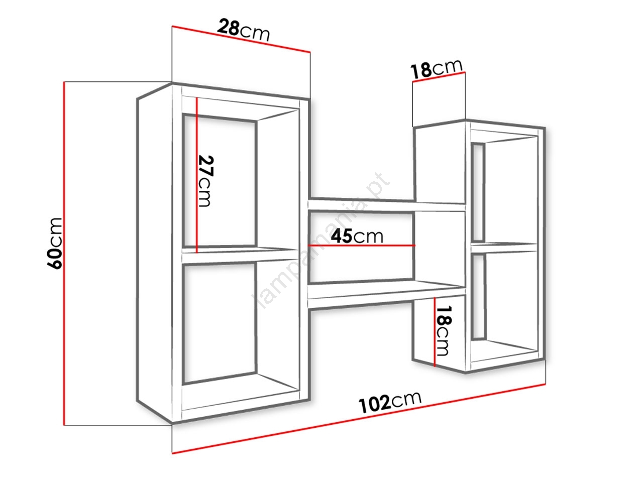 • Fabricado em placa de aglomerado laminado com espessura de 18 mm.