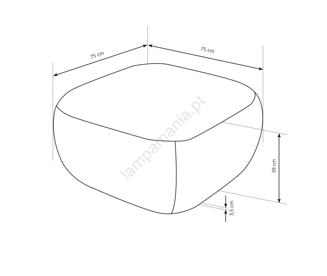 • A profundidade do assento de 75 cm oferece espaço suficiente para uma sentada descontraída e ergonómica.