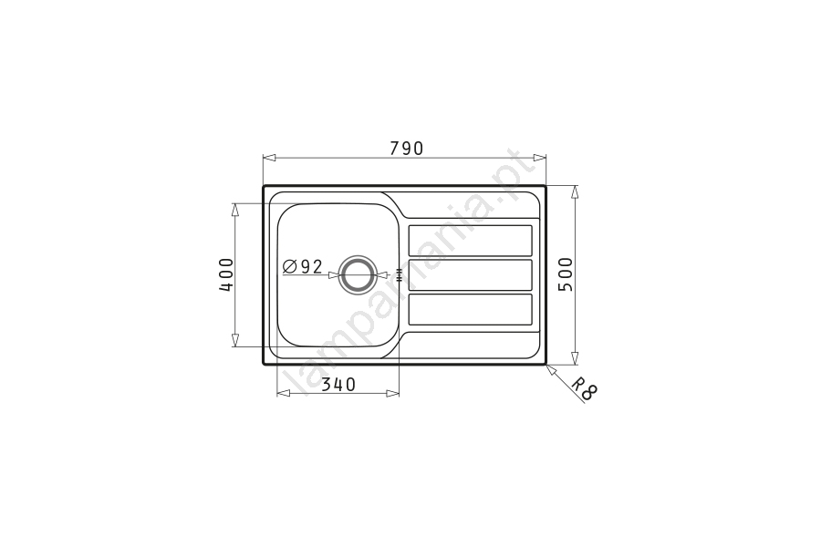 • Pia reversível - a cuba pode ser instalada à esquerda ou à direita.