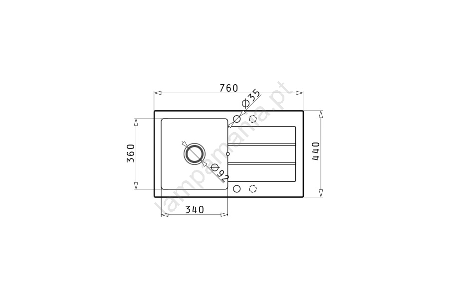 • Pia reversível - a cuba pode ser instalada à esquerda ou à direita.