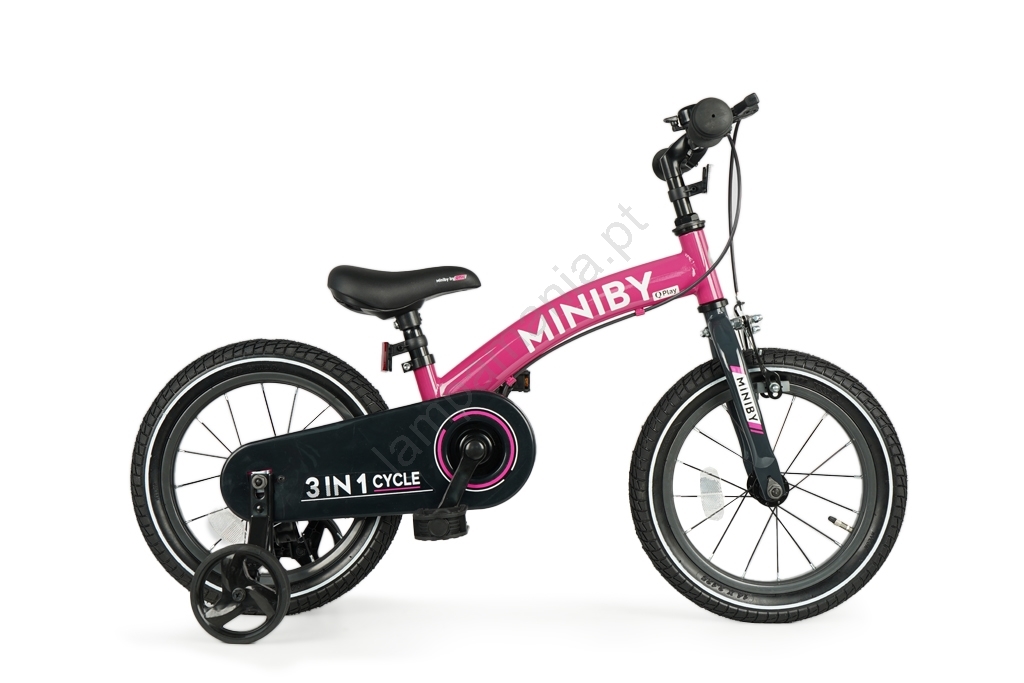 QPlay - Bicicleta infantil 14" MINIBY 3 em 1 rosa