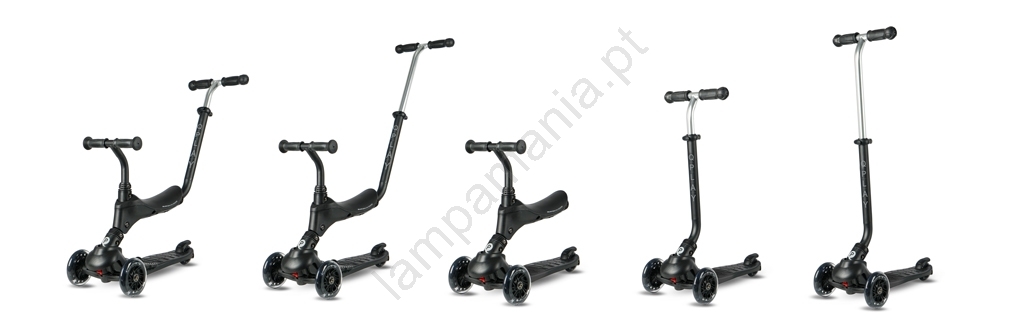 QPlay - Trotinete infantil SEMA PRO 5 em 1 com rodas LED, preta