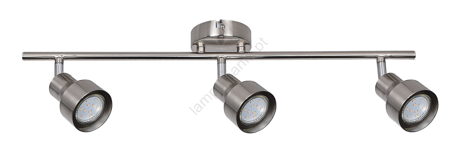 O moderno spot de luz Blake com 3 lâmpadas pode ser uma excelente escolha para diversos ambientes do seu apartamento: pode ser instalado na sala de estar, no quarto, na sala de jantar ou até na cozinha. Esta luminária totalmente metálica em cromo acetinado pode ser fixada na parede através de uma base decorativa redonda. As cabeças flexíveis da luminária estão posicionadas em uma barra horizontal de suporte, que está presa à base decorativa. Com elas, você ilumina de forma prática e eficiente todo o ambiente. A luminária Blake é compatível com três lâmpadas de até 50W cada. O tipo de soquete é GU10. Dependendo do seu gosto e do local de instalação, pode escolher fontes de luz em branco quente ou branco natural. As dimensões deste spot com 3 lâmpadas são: largura 580 mm, altura 145 mm, distância do teto 120 mm. Este modelo é fornecido sem fonte de luz.
