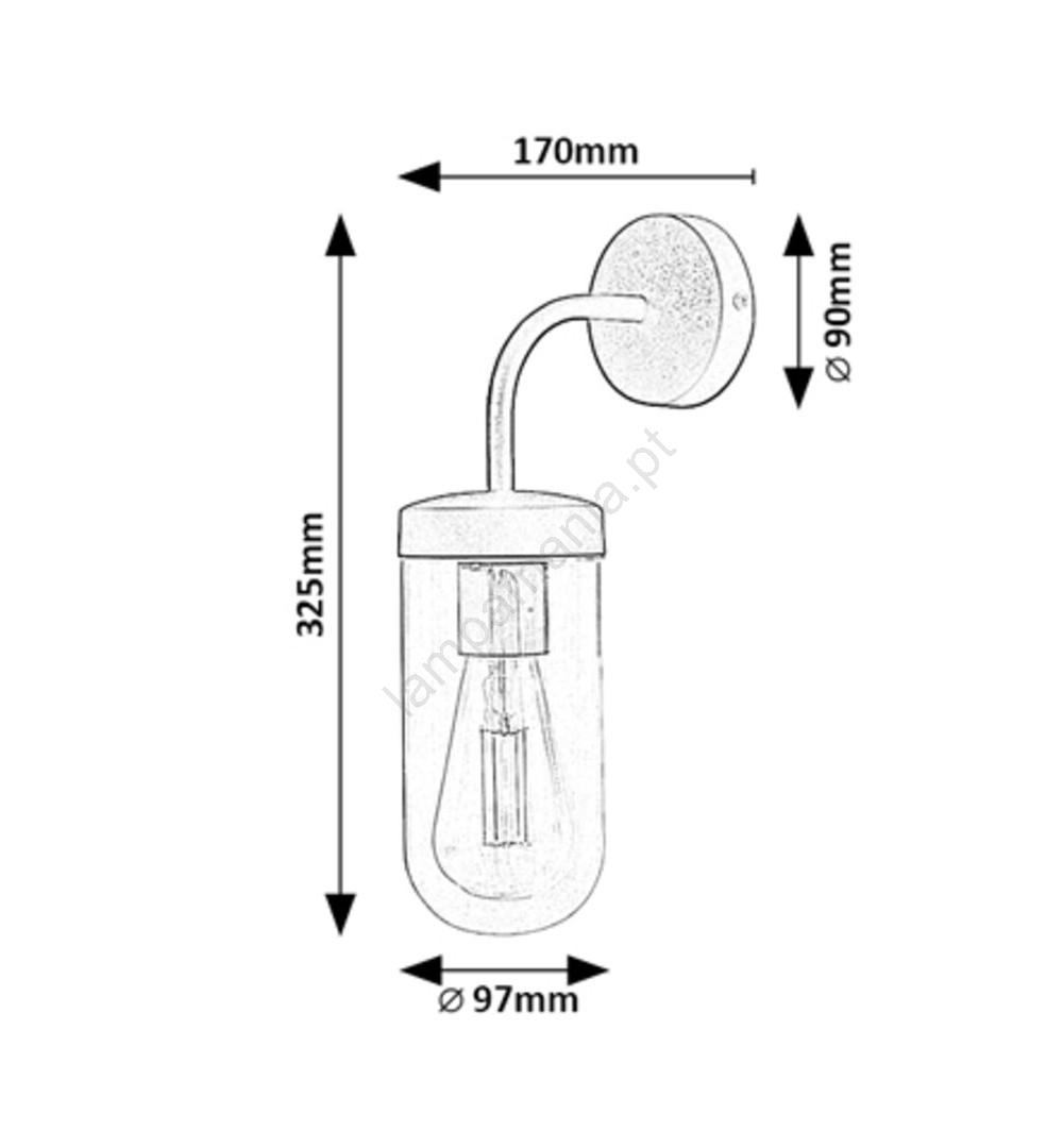 A iluminação moderna da casa de banho Yago é principalmente recomendada para ser instalada acima do espelho que complementa o lavatório, mas também se pode colocá-la no terraço ou em qualquer outro lugar na parede exterior da casa. Este modelo, constituído por uma luz de alumínio de cor cromada e um abajur cilíndrico feito de vidro transparente, pode ser utilizado com uma lâmpada de até 60 W. O tipo de tomada é E27. A iluminação Yago pode ser fixada na parede utilizando uma base decorativa redonda em cromo. A classificação IP44 desta iluminação assegura a sua protecção contra a entrada de objectos de até 1 mm de diâmetro e contra salpicos de água de qualquer direcção. As dimensões desta iluminação de parede de casa de banho são as seguintes: largura 97 mm, altura 325 mm, distância da parede 170 mm, e diâmetro de instalação 90 mm. Este modelo é fornecido sem fonte de luz.