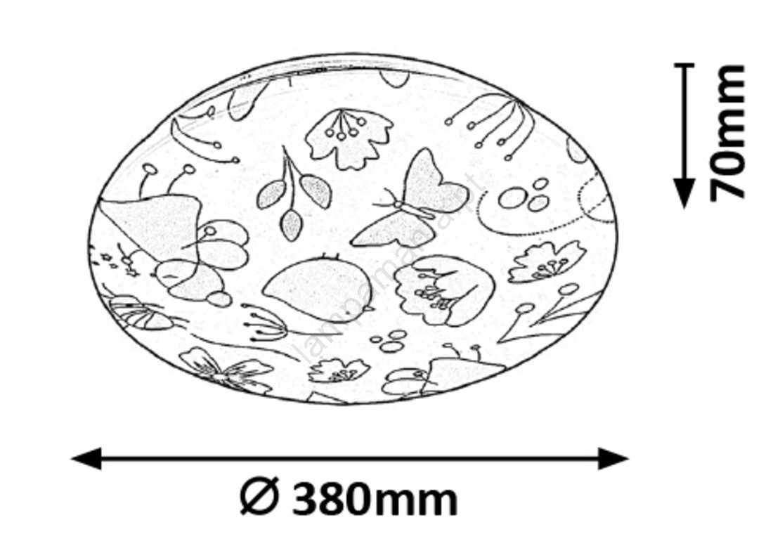 Graças às cores vibrantes, o candeeiro de teto Hanka será um complemento encantador para qualquer quarto infantil. O candeeiro Hanka, fabricado em metal e plástico, foi projetado pela empresa Rábalux. A base branca do candeeiro redondo é decorada com desenhos únicos, coloridos e atraentes. Os motivos florais e de pássaros deste modelo certamente irão encantar as meninas. O candeeiro de teto possui uma fonte de luz LED integrada com potência de 24 W, fluxo luminoso de 1 560 lúmens e vida útil de 25 000 horas. A fonte de luz, com temperatura de cor de 3000 K, emite uma luz branca quente que aumenta a atmosfera acolhedora e íntima do quarto infantil. O candeeiro Hanka tem um diâmetro de 380 mm e fica a 70 mm do teto. Este modelo encantador conta com uma garantia de 5 anos.