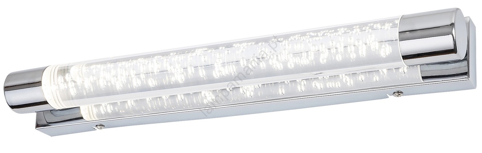 A luminária de parede para banheiro Abbey é um exemplo do estilo clássico. Esta luminária vintage em acabamento cromado é complementada por um difusor transparente, que destaca o design bolha da lâmpada. Instalado acima da pia ou do espelho, o modelo Abbey ilumina o banheiro com uma luz branca natural, criando um ambiente acolhedor. A luminária branca de parede é fabricada em metal e plástico e possui uma fonte de luz LED embutida e energeticamente eficiente. A potência da fonte de luz é de 10 W, com um fluxo luminoso de 900 lúmens, temperatura de cor de 4.000 K e vida útil mínima de 30.000 horas. A lâmpada Abbey possui grau de proteção IP44, garantindo proteção contra a entrada de objetos com diâmetro superior a 1 mm, bem como contra respingos de água provenientes de qualquer direção. As dimensões da luminária são: comprimento de 400 mm e distância da parede de 50 mm. A luminária para banheiro Abbey é fornecida com garantia de 5 anos.