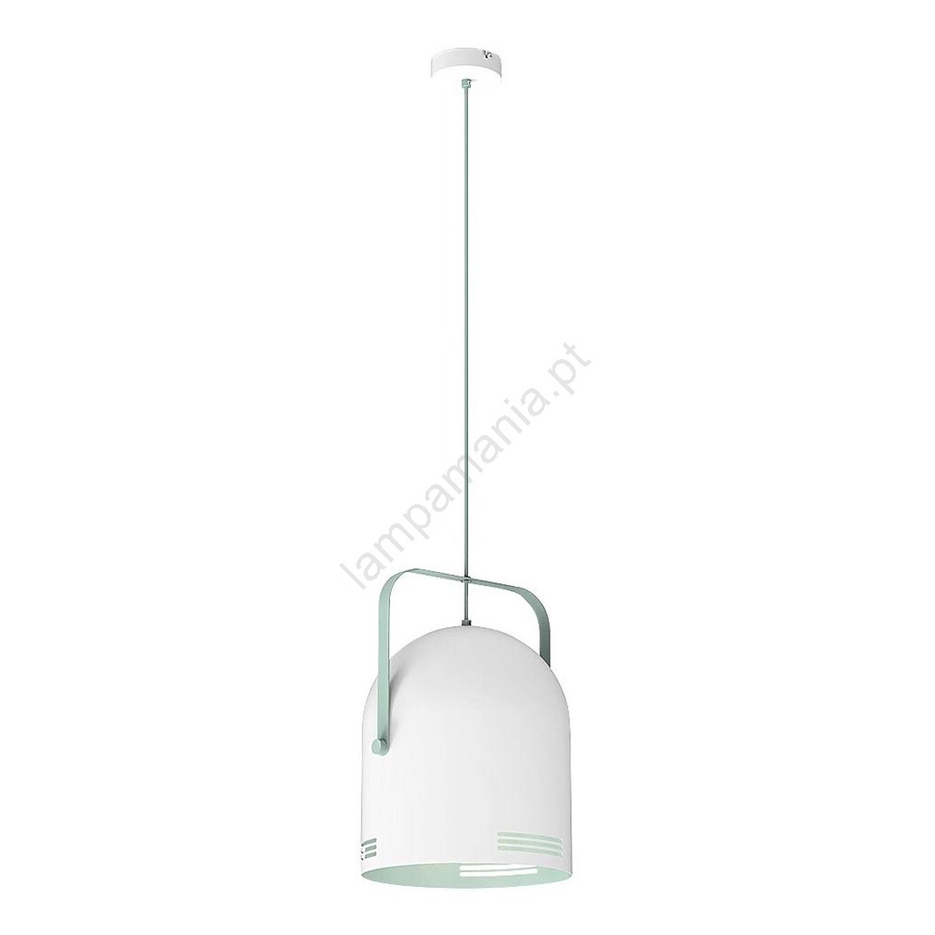 O candeeiro suspenso Minuet, fabricado em metal com uma combinação de cores branca e menta, será um toque fresco no seu apartamento moderno. O candeeiro Minuet foi desenhado pela empresa Rábalux e é especialmente recomendado para quartos infantis. A cúpula em forma de sino é complementada por uma base decorativa redonda e branca. O design único e as cores vibrantes conferem um visual distinto ao candeeiro. O candeeiro suspenso pode ser utilizado com uma fonte de luz de até 40 W, com soquete do tipo E27. Conforme o seu gosto e o local de instalação, pode escolher uma lâmpada com luz quente ou branca natural. O candeeiro suspenso Minuet tem um diâmetro de 250 mm e uma distância de 1250 mm do teto. Este modelo é fornecido sem lâmpada.