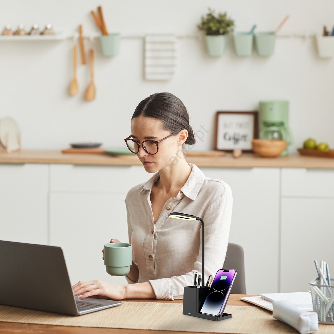 • Rabalux - Candeeiro de mesa LED com regulação e carregamento sem fios QI LED/4W/5V 3000/4000/6500K preto