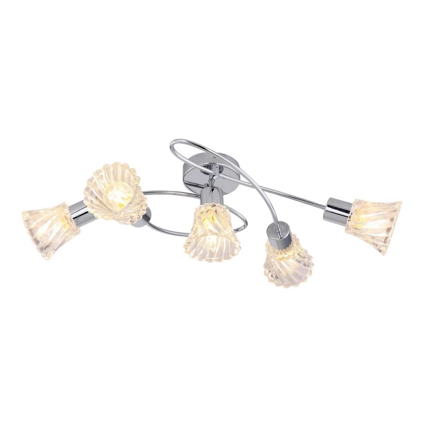 O candeeiro de teto Hestia com 5 lâmpadas em estilo clássico será um móvel elegante na sua sala de estar ou quarto. O candeeiro metálico cromado, que lembra tentáculos entrelaçados, é complementado por cúpulas de vidro transparente. O candeeiro pode ser fixado ao teto através de uma base decorativa redonda. O destaque das cúpulas em forma de sino é o efeito torcido da sua superfície ondulada. As cinco cabeças do candeeiro, orientadas em direções diferentes, garantem luz suficiente em todas as áreas da divisão. Este candeeiro de teto pode ser utilizado com cinco lâmpadas, cada uma com potência até 40W. O tipo de soquete é E14. Para melhorar a atmosfera íntima e acolhedora, escolha fontes de luz de tom branco quente para este candeeiro. As dimensões do candeeiro de teto Hestia com 5 lâmpadas são as seguintes: largura 635 mm, distância do teto 165 mm, diâmetro de instalação 100 mm. Este modelo é fornecido sem fontes de luz.