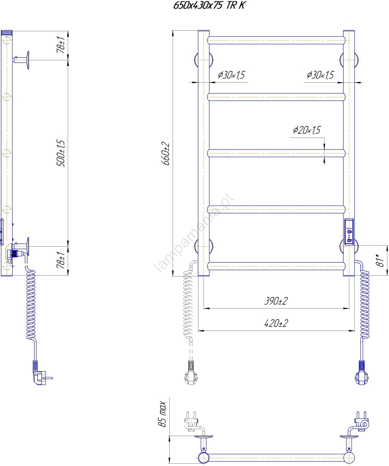 Radiador-toalheiro CLASSIC para casa de banho 65W/230V 66x42 cm inox/cromado brilhante lado direito