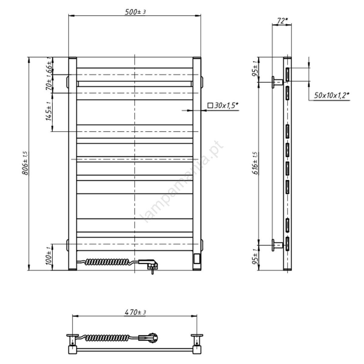 Radiador toalheiro para casa de banho com termostato LARGO 432W/230V 80,6 cm IP44 branco, ligação à esquerda, perfil quadrado