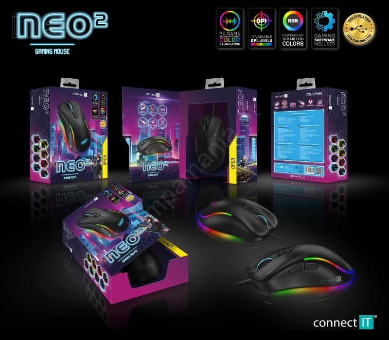 • Inclui um conjunto de adesivos promocionais "CONNECT IT NEO" e software para download gratuito.