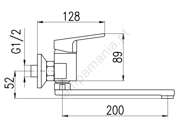 • Torneira mural para pia com bico plano de 200 mm.
