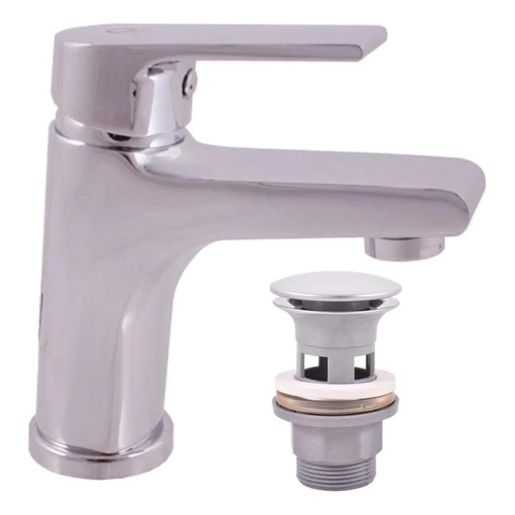 • Torneira de lavatório de bancada com válvula de escoamento.