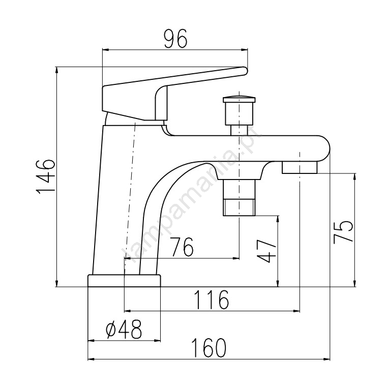 • Diâmetro do cartucho cerâmico: 35 mm.