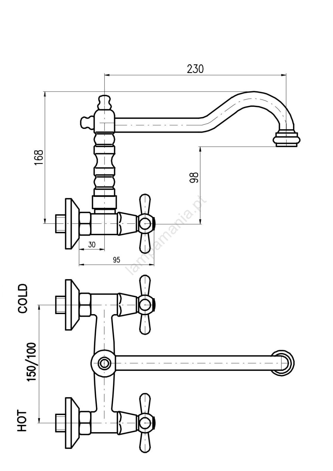 RAV Slezák MK102.5/28SM - Torneira de cozinha/lavatório MORAVA RETRO 16,8 cm, latão envelhecido