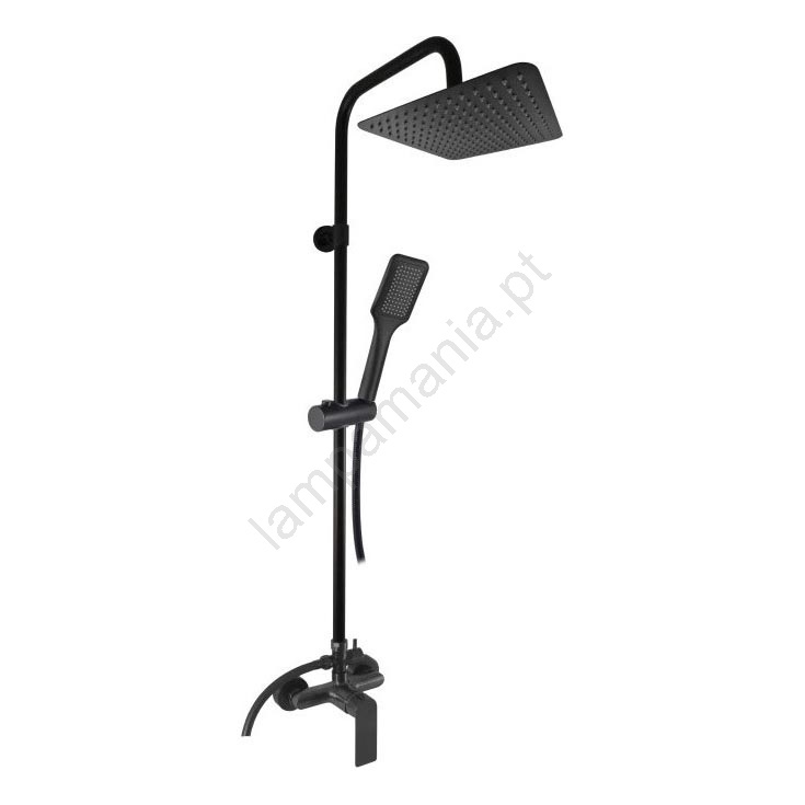 • Conjunto inclui: misturador de duche, duche de mão em plástico com 5 funções (80x275 mm), cabeça de duche em plástico (300x300 mm), mangueira de duche em plástico (1500 mm), barra de duche.