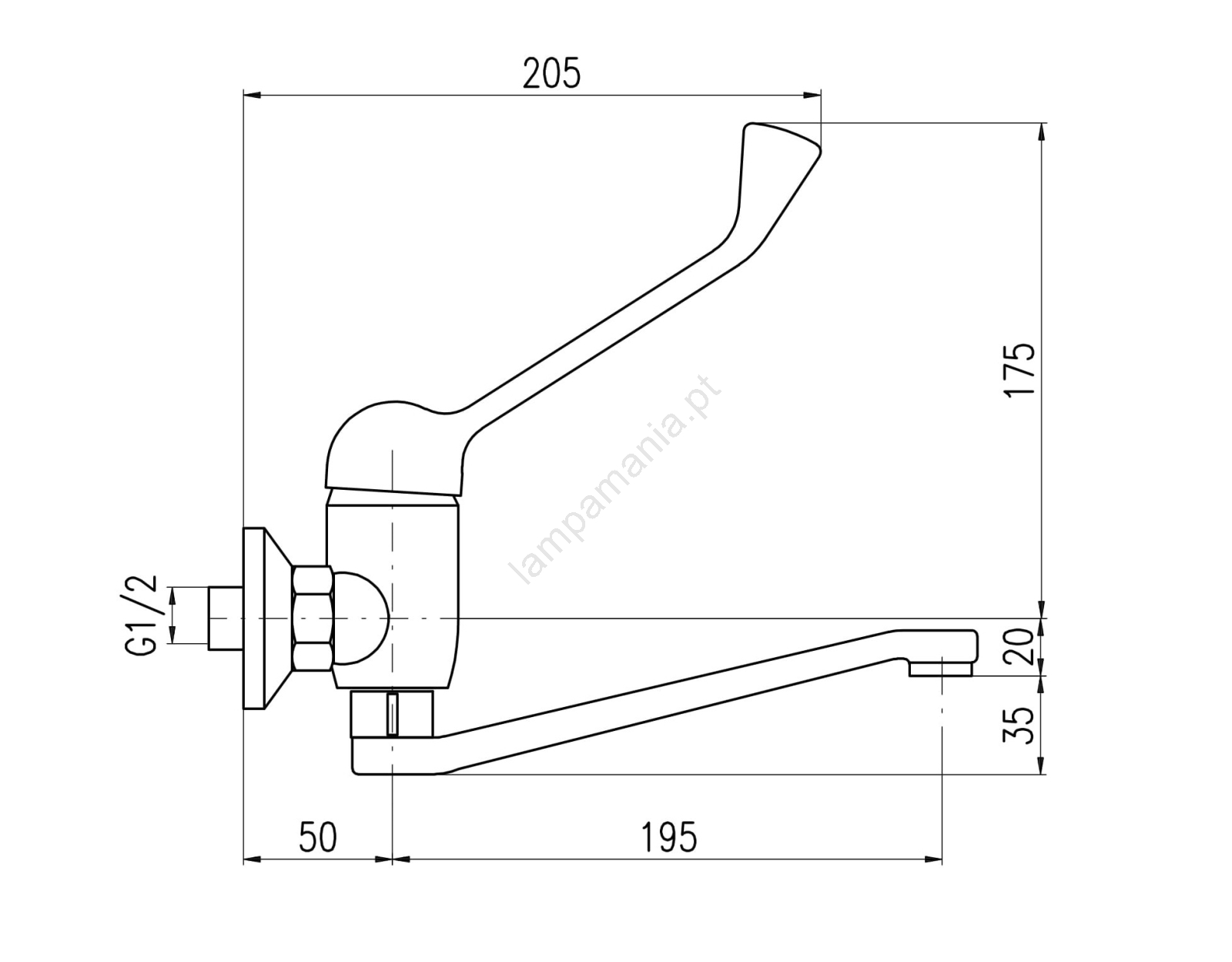 • Torneira de bancada para lavatório sem válvula de escoamento com alavanca médica.