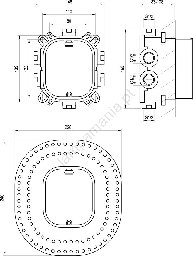• R-box é um sistema de instalação universal para misturadores monocomando de banheira e duche encastrados, integrado na parede.