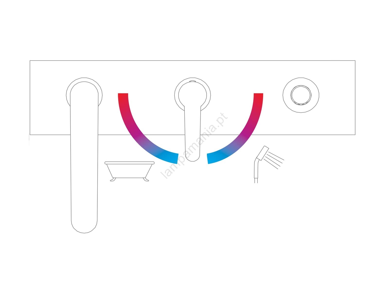 • Ao mover a alavanca para a direita (ducha) ou para a esquerda (banheira) regula-se apenas a temperatura da água; o caudal permanece constante.