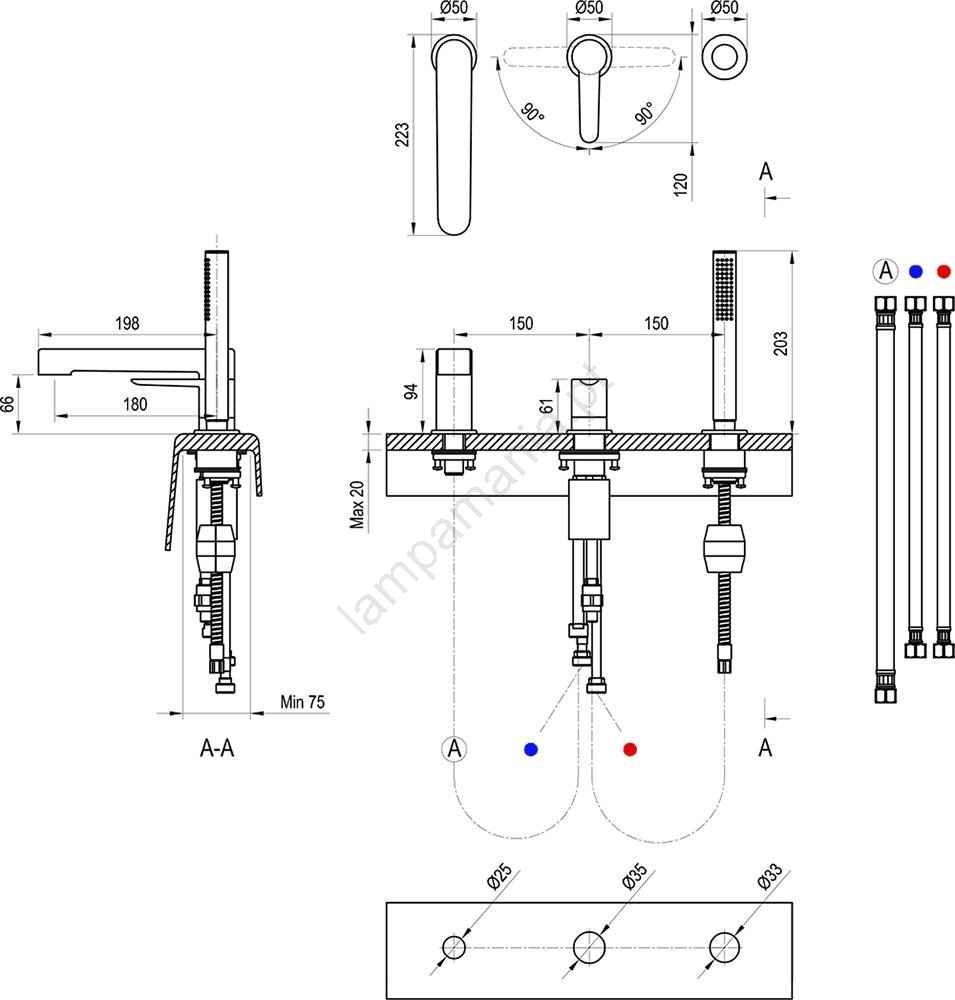 • Esta misturadora de banheira de 3 furos é um complemento elegante para qualquer casa de banho.